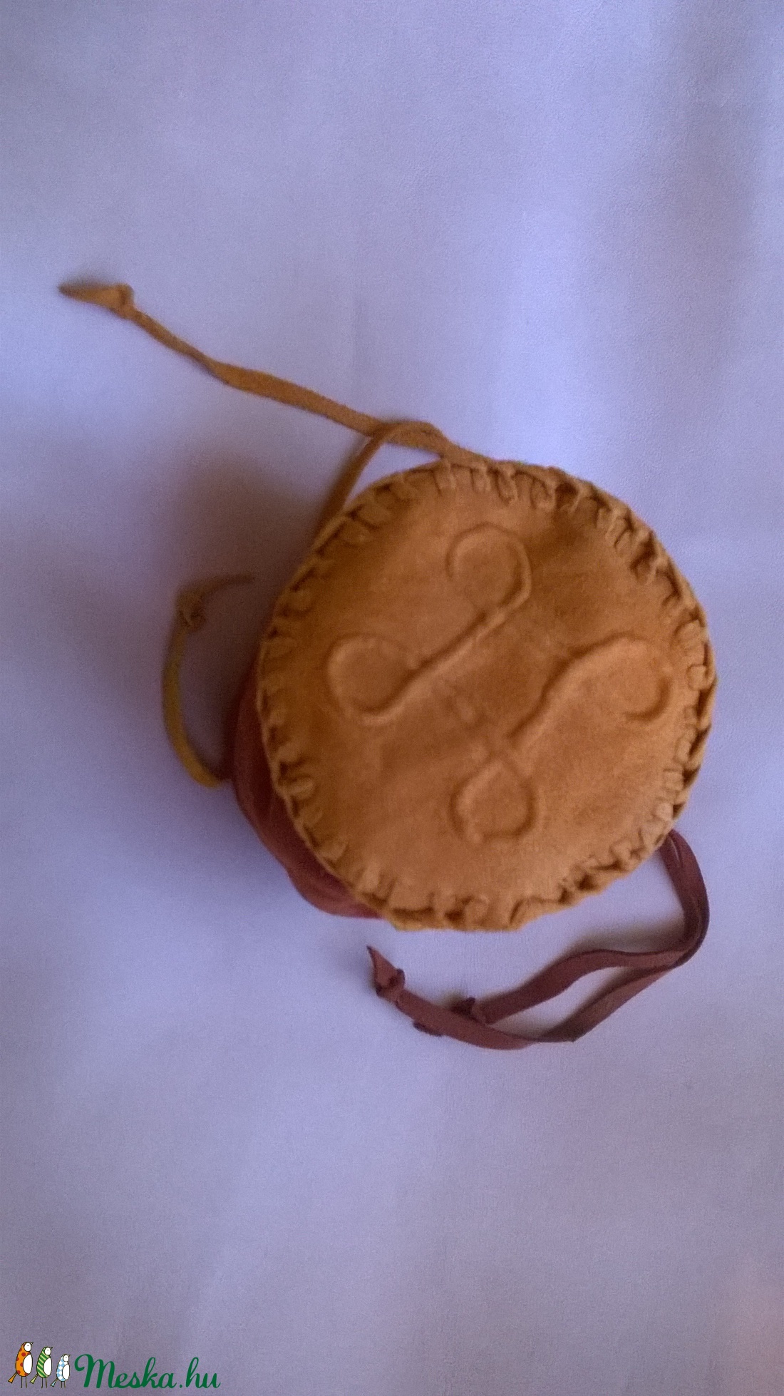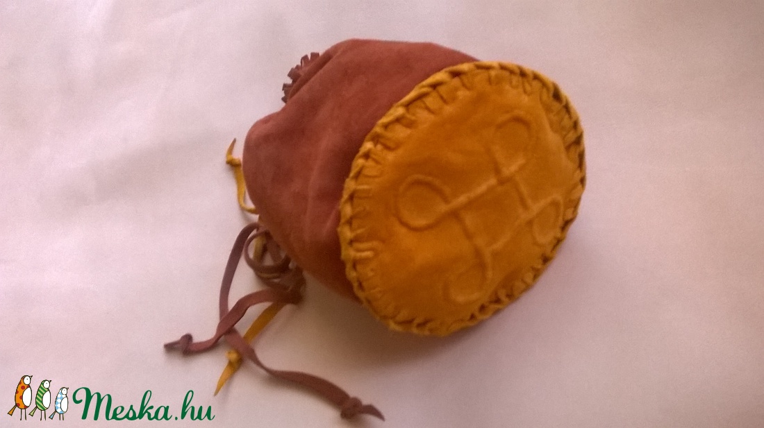Domborított mintájú fűzött bőrzacskó