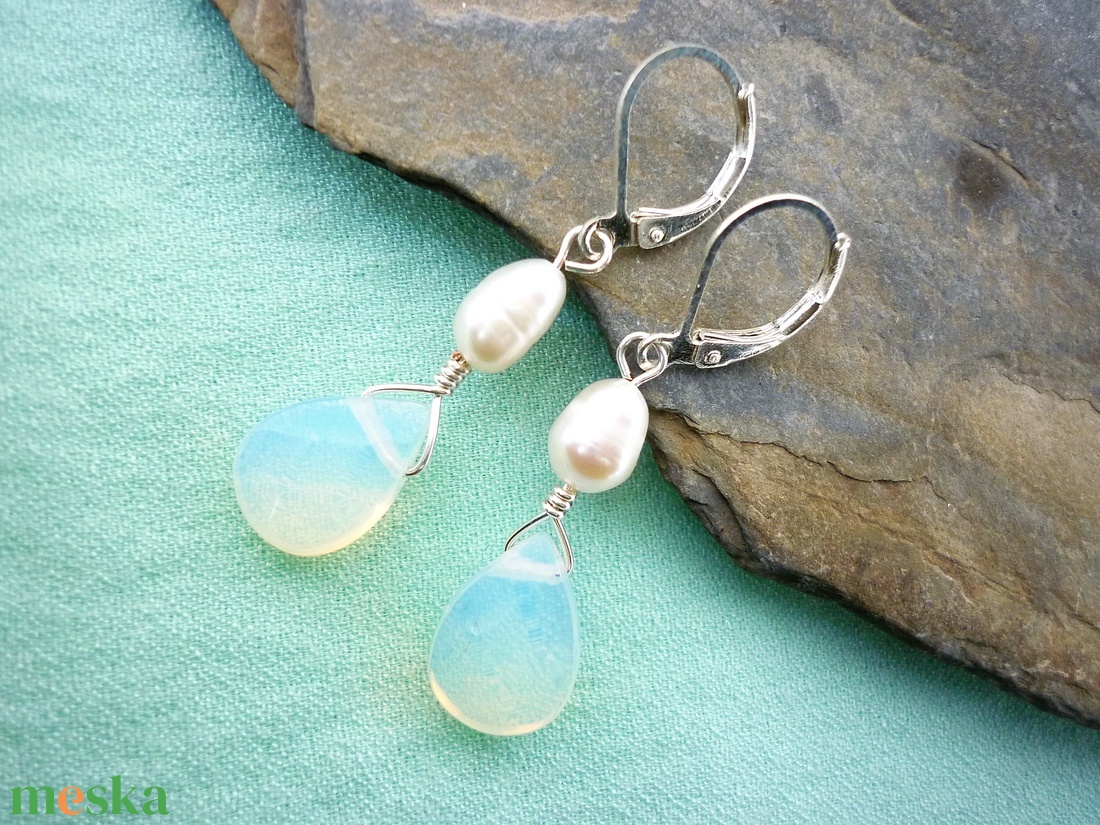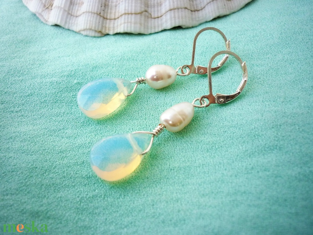 Mystic - opalit holdkő/ tenyésztett gyöngy fülbevaló sterling ezüst akasztóval