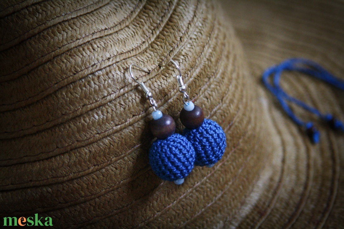 AFRIKA Baba-mama ékszerszett : okker-kék rágcsalánc és fülbevaló