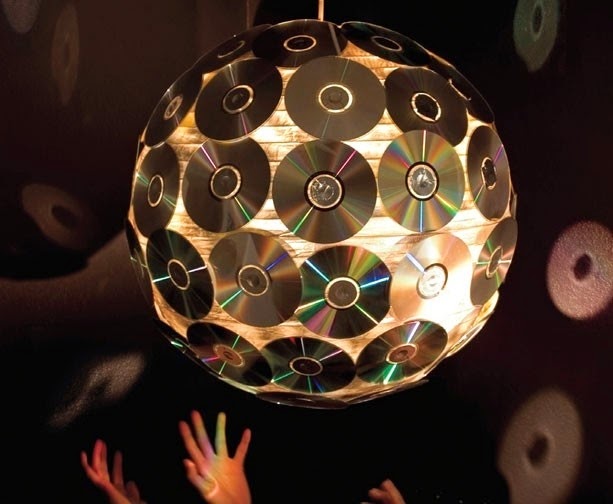 Egy IKEA-s papírcsillárra CD-ket erősítve (pl. vékony dróttal) készen is van a homemade diszkógömbünk, és már indulhat is a buli! |