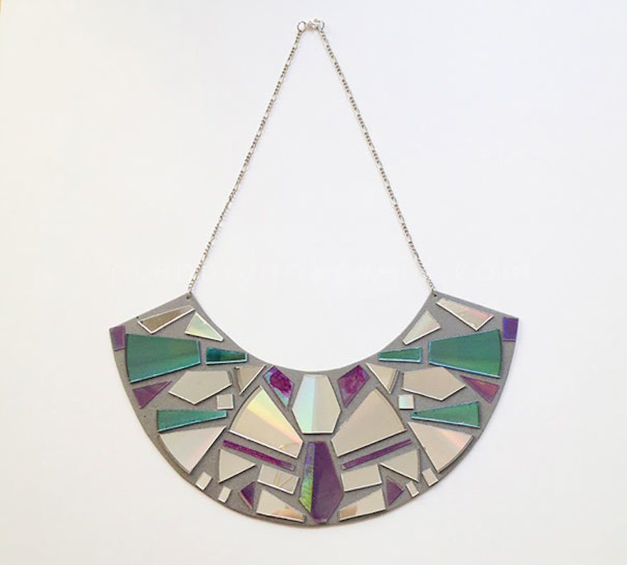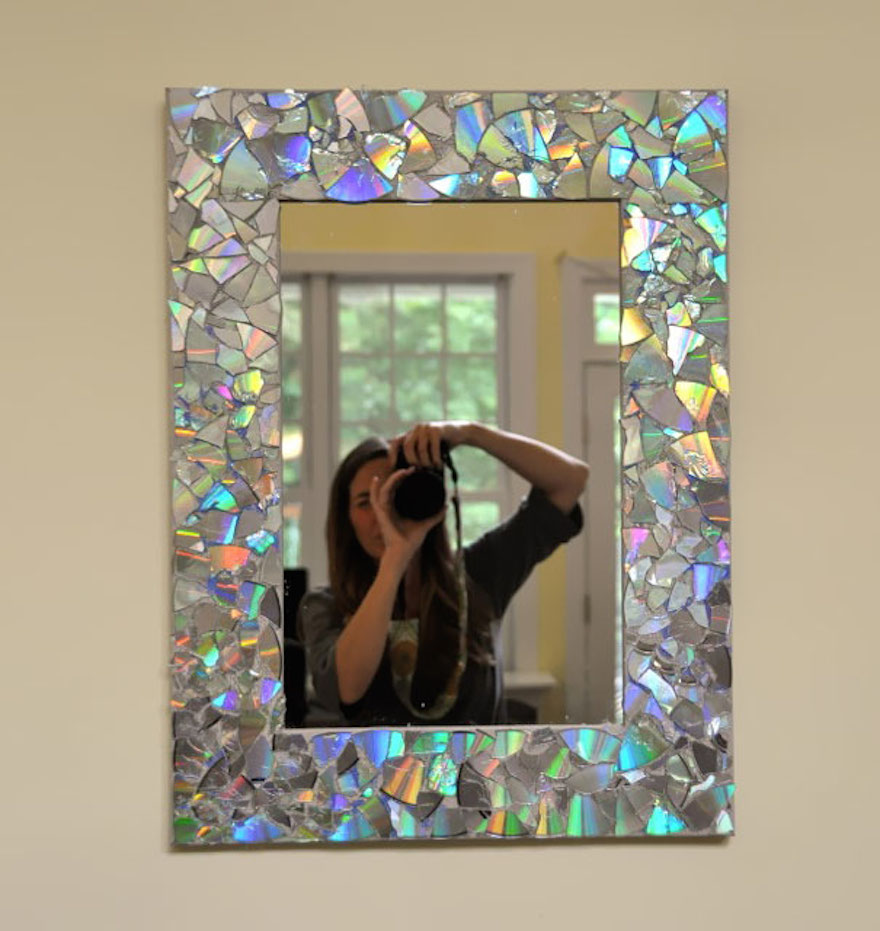 A felaprított lemezdarabokat mozaikként használva ilyen szemkápráztató tükörkeret készülhet. |
