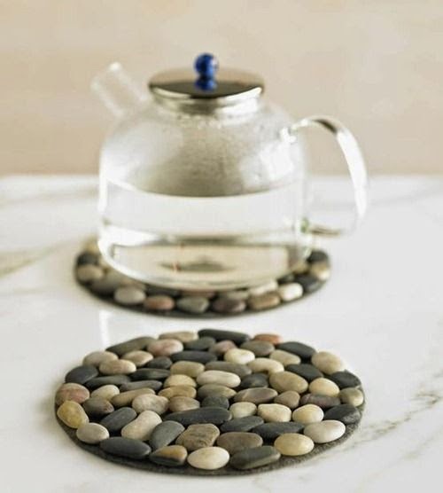 Egy régi CD-re a folyóparton gyűjtött apró, lapos kavicsokat ragasztva igazán szemrevaló edényalátétek készülhetnek; ki gondolná, miből van? |