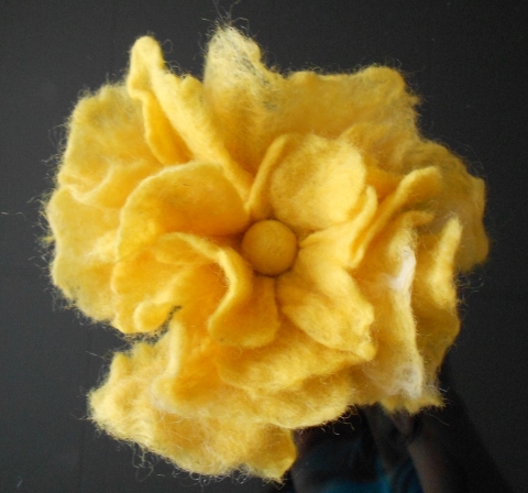 Sárga nemezelt virág kitűző