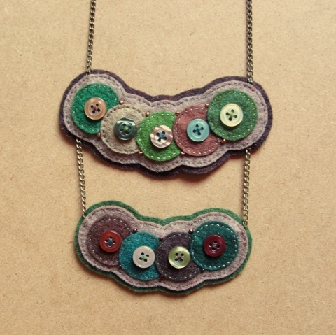 nonett - barna és zöld filc nyakbavaló réz láncon