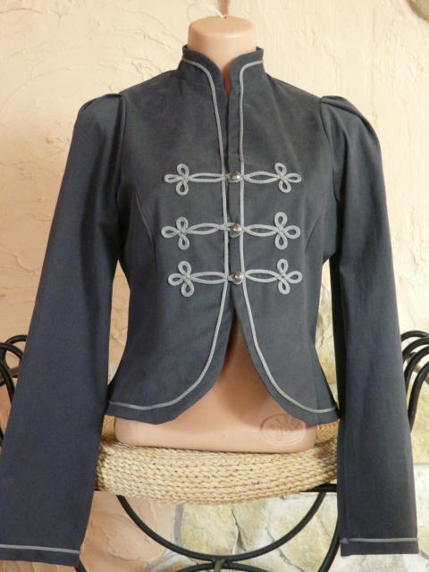 Paszományos vászon blézer kék, szürke zsinórral