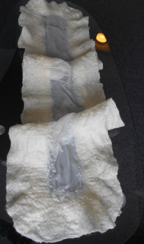 Hófehér nemezelt selyemsál