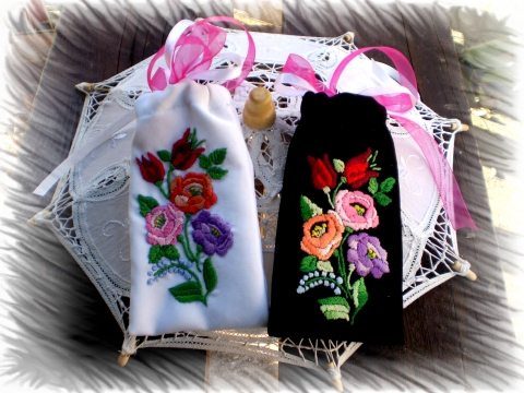 pamutfonál, aida vászon, kalocsai minta, szatén szalag, organza szalag