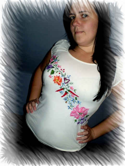 Csinos egyedi hímzésű kézzel varrott kalocsai mintás női felső póló RENDELÉSRE!