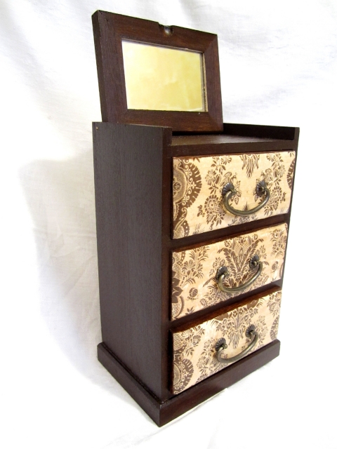 Barna komód antik fogantyúkkal és tükörrel - 3 fiókos szekrény - mmse74 részére