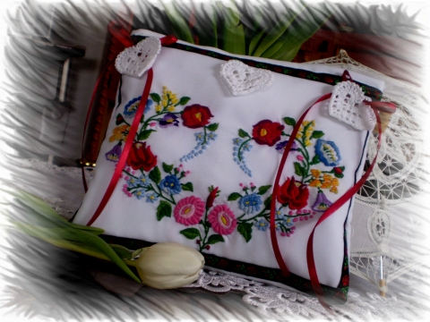 - Szívekkel ölelve- Gyönyörű kéz hímézésű kalocsai mintás neszesszer Anyák napjára, Valentin napra!