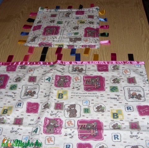 pamut flanel, vlies-vatelin, szatén szalag, csörgő anyag