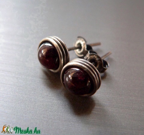 Gránát antik ezüst bedugós fülbevaló