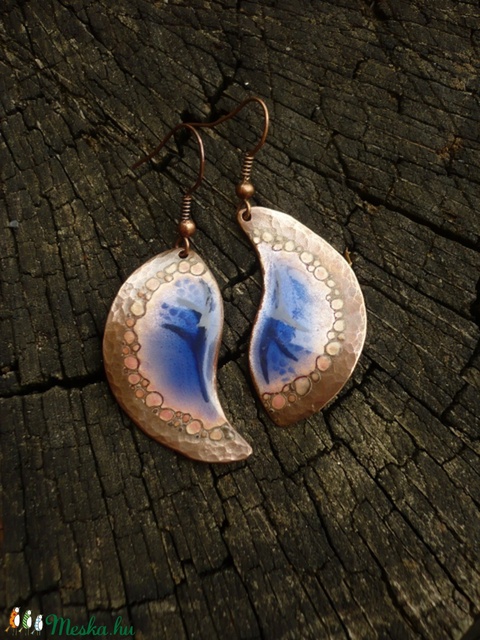 Kalapált szélű tűzzománc fülbevaló (sötétkék)