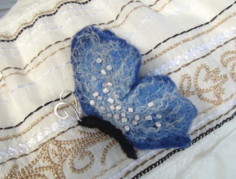 merinó gyapjú, drot, selyem szálak, gyöngyök