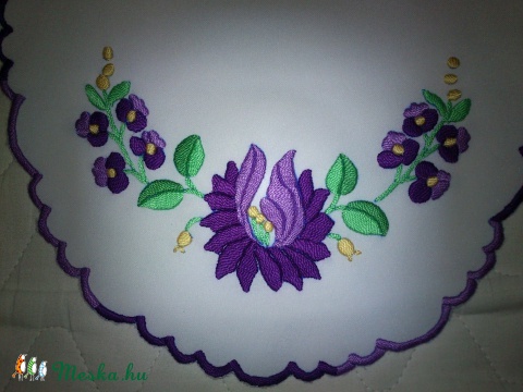 Lilák hímzett terítő