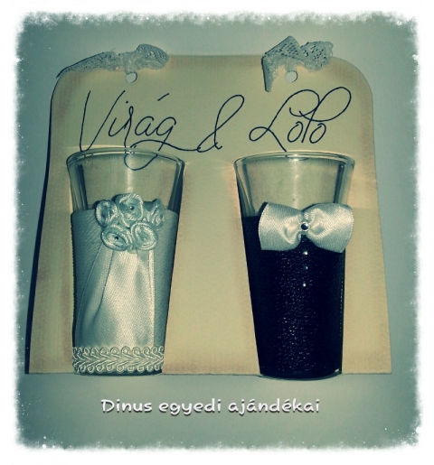 Esküvői pálinkás poharak díszcsomagolásban