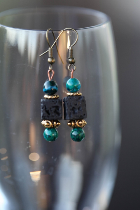 Krizokolla-lávakő fülbevaló