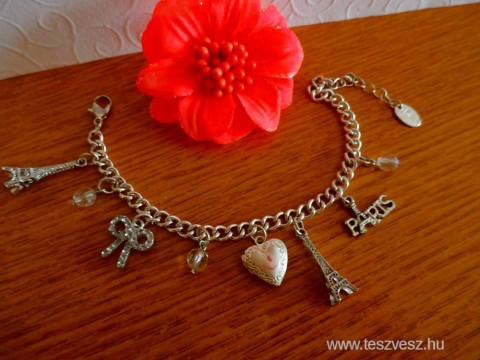 Csajos bizsu karkötő charmokkal PÁRIZS stílusában