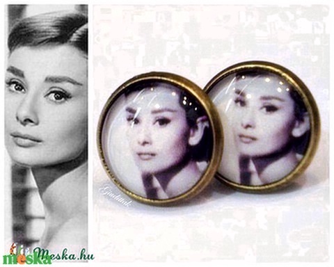 bronz színű fülbevaló alap, üveglencse, fotópapírra nyomtatott kép