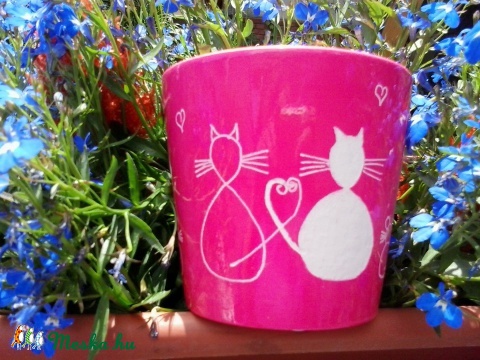 Kézzel gravírozott kaspó - szerelmes macskás-egeres