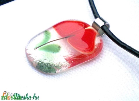 Pipacsos medál, virágos üvegkszer ajándék lányoknak névnapra, születésnapra.