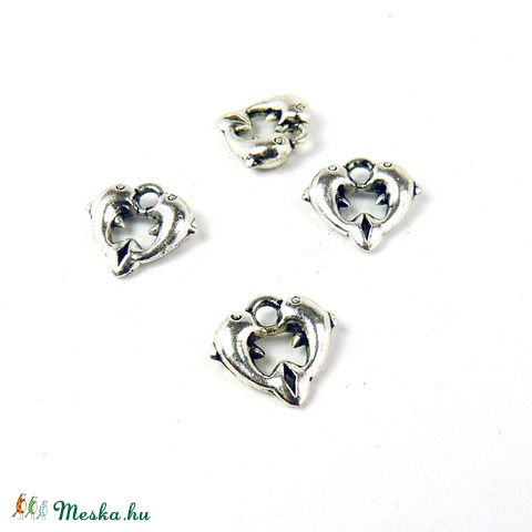 Delfines szívecske ékszerdísz, fityegő, charm 11x12mm (4db)