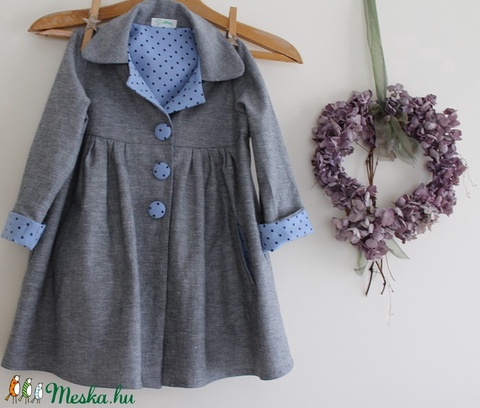 Kabát lányka tavaszi kabát szürke kék pöttyös kabát