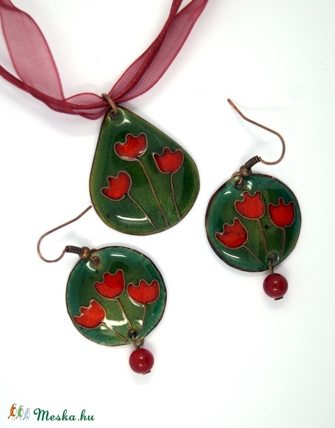 Tulipános rét tűzzománc fülbevaló - godomeli részére