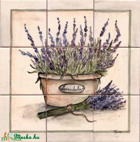 Levendulás kézzel festett csempekép