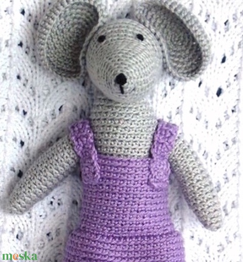 - Anyaga: pamut fonal szürke, pamut fonal lila, vatelin tömőanyag, fekete hímzőfonal