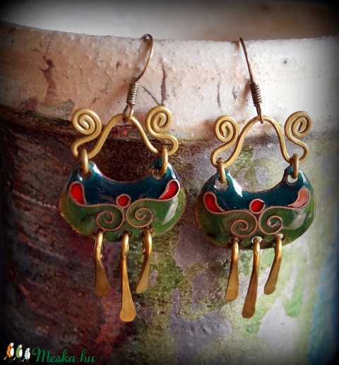 Vidám, kacskaringós tűzzománc fülbevaló