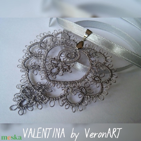 VALENTINA szürke hajócsipke szív medálos nyaklánc, horgolt