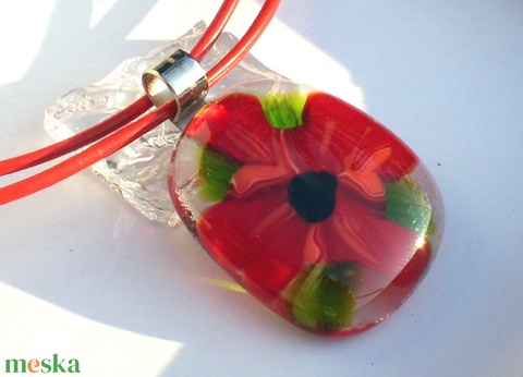 Piros virágos üvegékszer , ajándék nőknek névnapra, születésnapra.