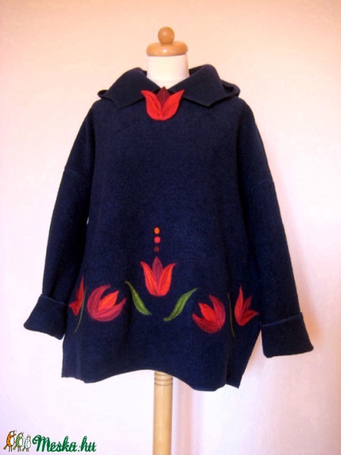 Tiame sötét kék manó kapucnis poncsópulcsi tulipán motívummal mirape részére rendelésre
