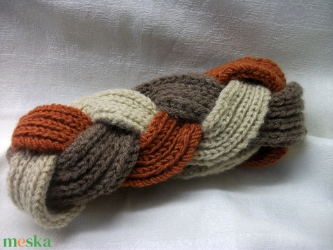 Sapka helyett, kötött fejpánt, hajpánt, fekete és bézs