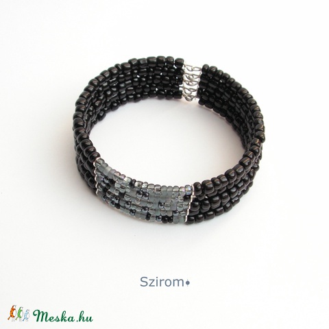 Hétköznapi elegancia - Fekete és kékesszürke csillogó karperec