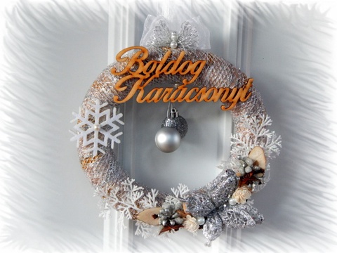 "Ezüst Varázs" Gyönyörű ezüst karácsonyi ajtódísz kopogtató