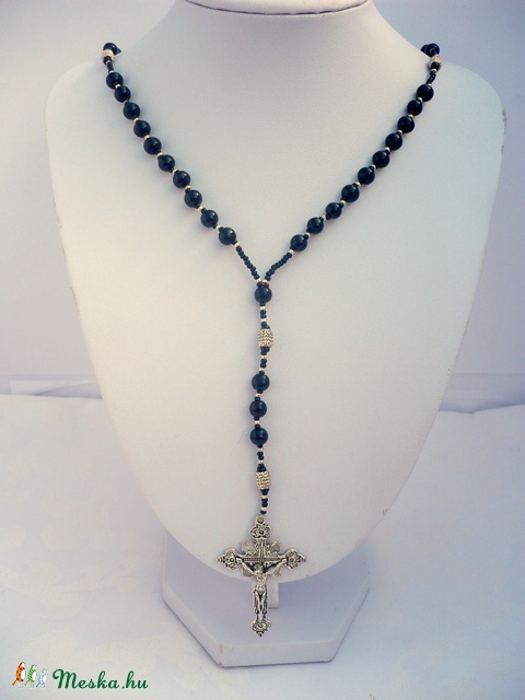 Fekete -ezüst férfi rózsafüzér rózsafüzér nyaklánc , férfi nyaklánc, férfi ékszer, Meska