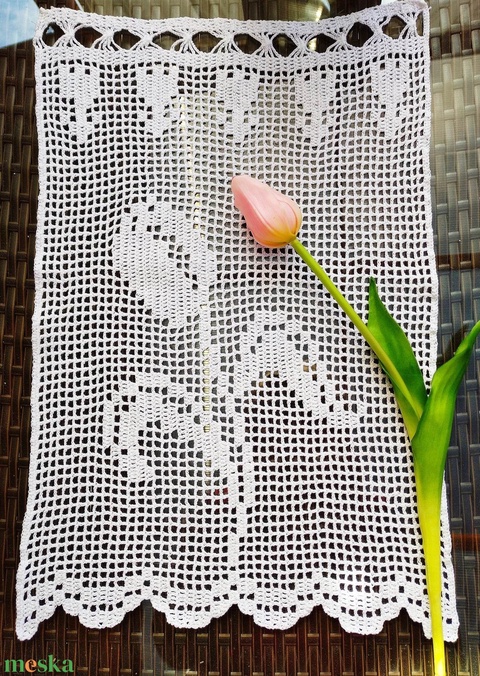 Tavaszi táncoló tulipánok. Romantikus-horgolt csipkés vitrázs függöny