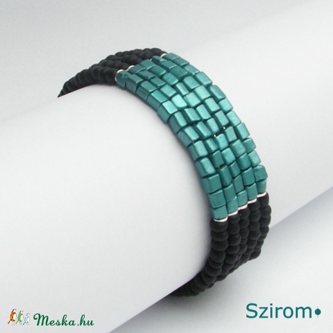 Sikeres nő - fekete és türkiz színű karkötő