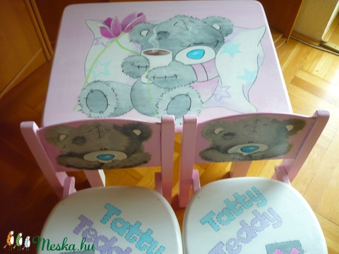 Mesefigurás asztal/szék szett (teljes kézi munka)