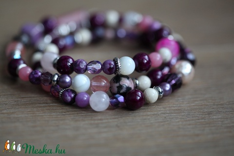 Lila-rózsaszín 3 soros karkötő vagy nyaklánc