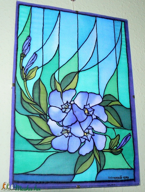 - Anyaga: valódi hernyóselyem, selyemfesték, üveg képkeret, selyem kontúr