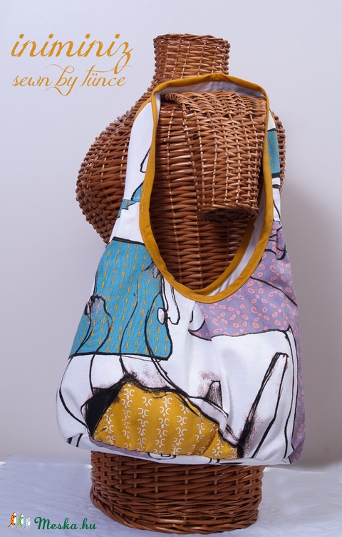 Külső anyaga mintás erős vászon, bélése vékony fehér pamut. Nagyon könnyed, nyária kiegészítő.