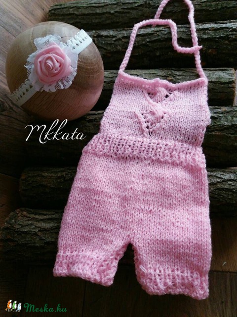 Kötött baba nadrág + fejpánt fotózásra 56- os méret