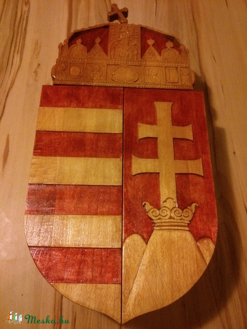 Magyar címer formáju falra szerelhető kulcstartó szekrényke.