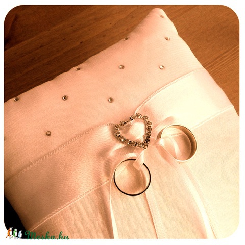 Szíves- strasszos EKRÜ esküvői gyűrűpárna