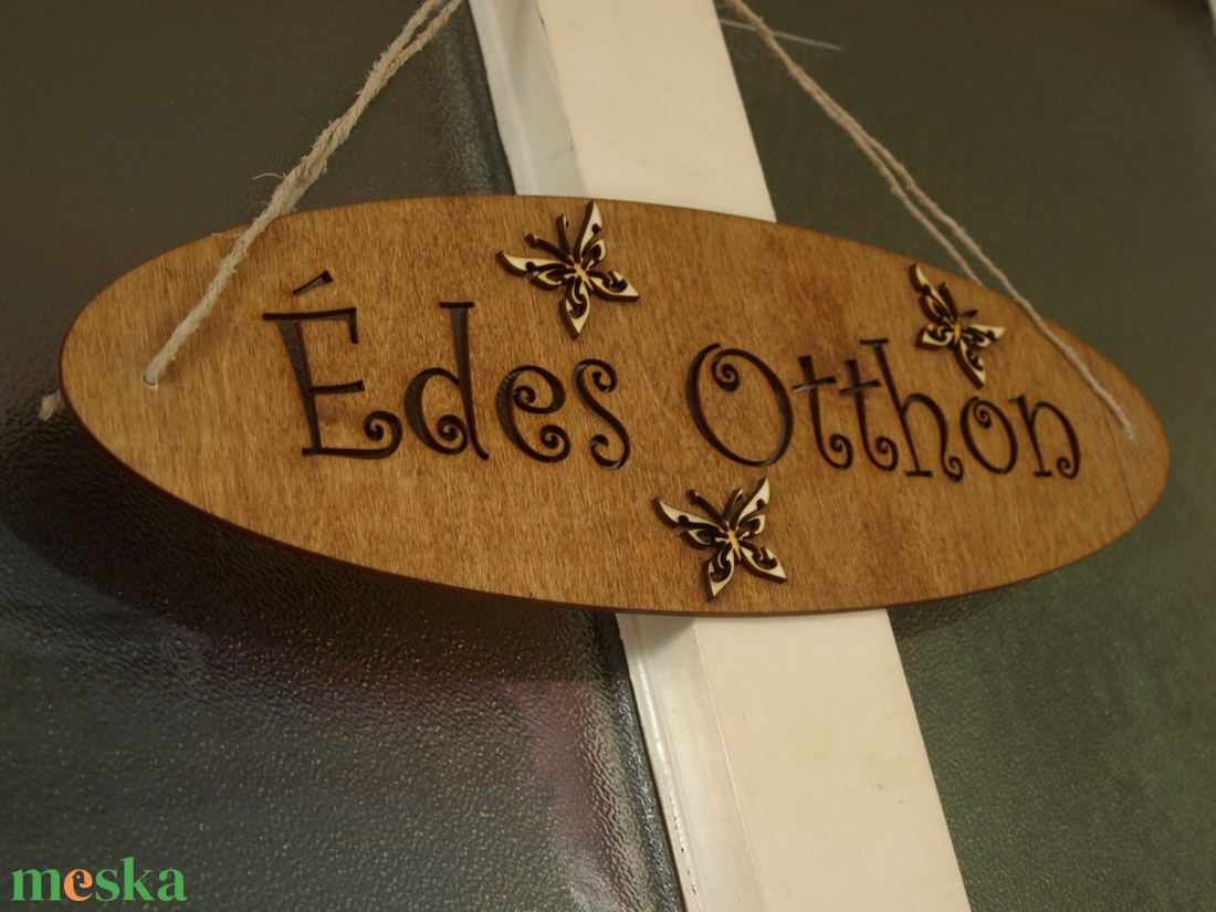 'Édes Otthon' feliratú tábla ajtódísz dekoráció lepkékkel