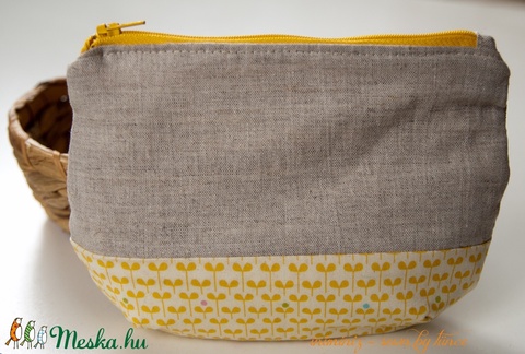 Len-pamut cipzáros neszeszer, tok, erszény, tartó - Sárga leveles