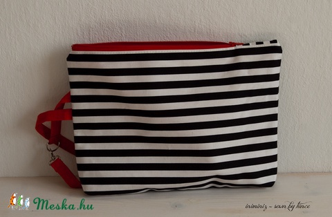 Nagy csíkos neszi, szütyő, táska, pelenkázótáska - piros